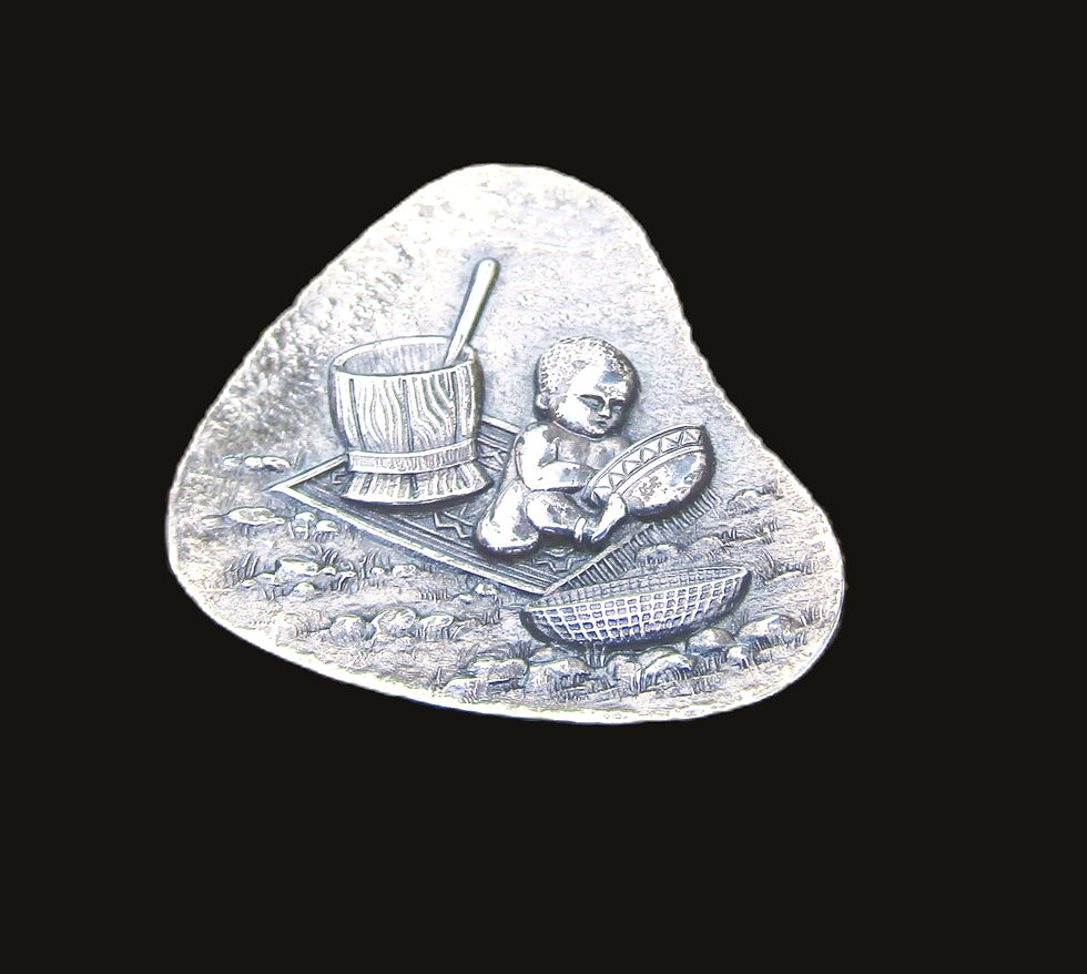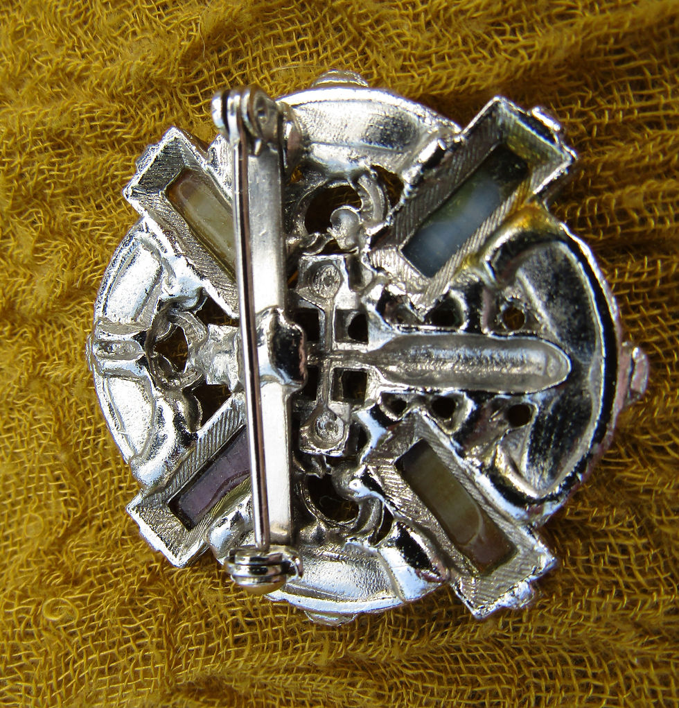 Antique engraved Jerusalem Cross mother of pearl brooch